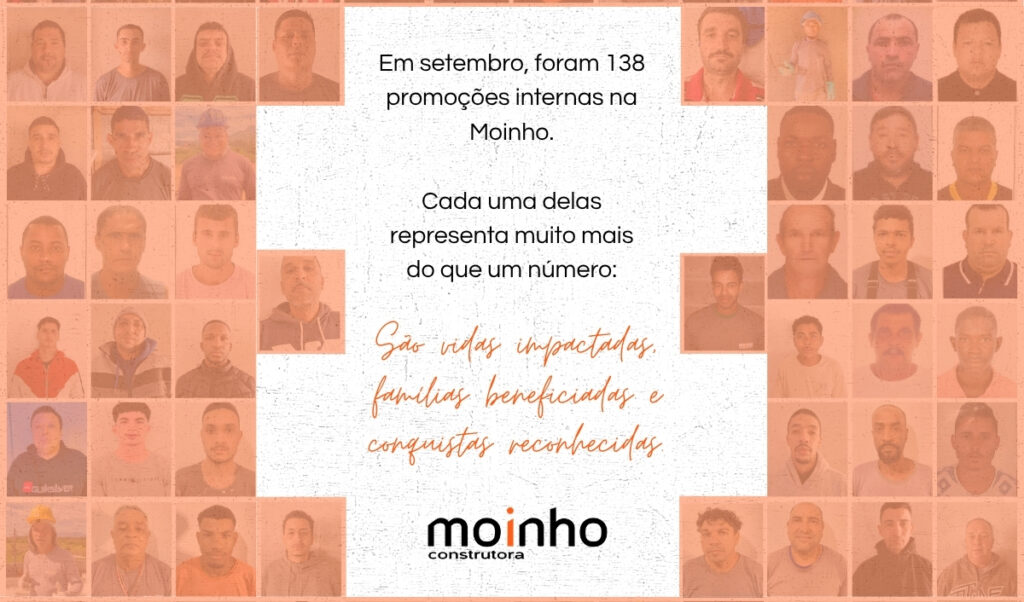O mês de setembro foi marcado por conquistas na Construtora Moinho. Foram 138 colaboradores promovidos, representando não apenas um número, mas 138 histórias de dedicação, comprometimento e evolução.