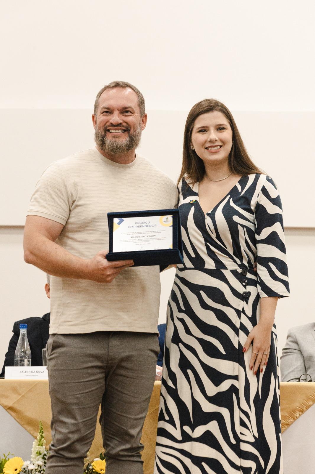 A medalha, destaca empreendedores que impulsionam Biguaçu por meio da geração de empregos, da inovação e do fortalecimento da economia local.